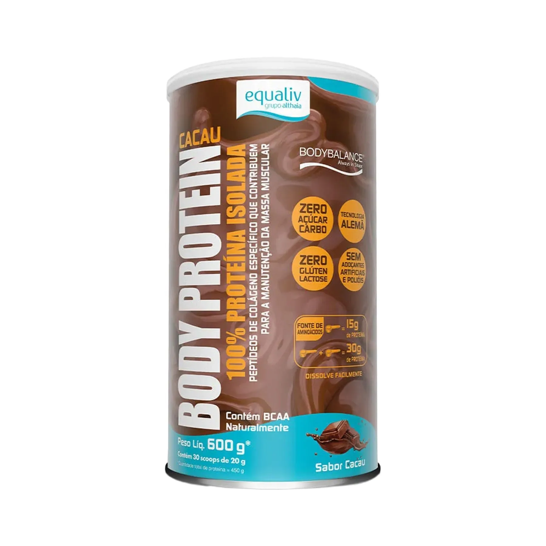 Body Protein Equaliv não é proveniente do soro do leite, sendo assim, pode ser consumido tranquilamente por todos aqueles intolerantes à lactose. Equaliv Body Protein é uma proteína isolada com tecnologia, a base de peptídeos de colágeno específico para os músculos. Outro diferencial é a presença de aminoácidos de cadeia ramificada (BCAA), a leucina, isoleucina e valina, os quais correspondem a cerca de 35% dos aminoácidos essenciais em proteínas musculares. Estudo mostra que 15g/dia + 3h de exercícios físicos por semana resultam em 50% de aumento na efetividade do treino, se comparado às pessoas que não ingeriram fonte de proteína.