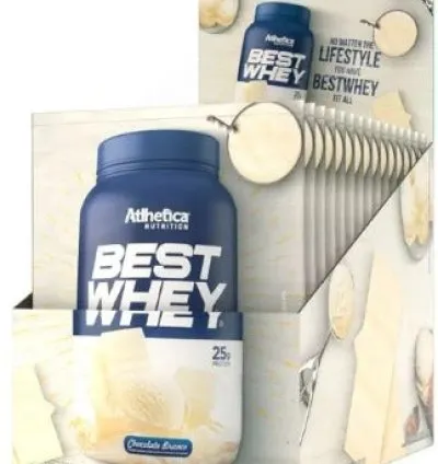 Whey Protein - Best Whey Protein Dadinho - ATLHETICA NUTRITION Nossa equipe especializada em Inovação, Pesquisa e Desenvolvimento foi até o fundo do baú para resgatar o sabor da infância e produzir o novíssimo Best Whey sabor Dadinho, o verdadeiro gosto de nostalgia! A novidade conta com 25g de proteína por porção, adoçado com Stevia, zero açúcar, zero glúten, zero gordura trans, baixo teor de carboidratos e ideal para você conseguir os resultados desejados na academia. Antes ou depois do treino, Best Whey Dadinho possui a exclusiva fórmula com blend de proteínas WPC, WPI e WPH, importantes para auxiliar na recuperação muscular, ganho de massa, rendimento nas atividades físicas e ainda colaboram na reeducação alimentar, uma vez que ajuda na saciedade. Best Whey + Dadinho = o verdadeiro sabor da sua infância.